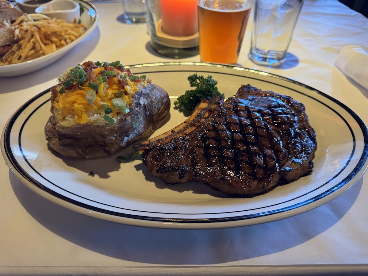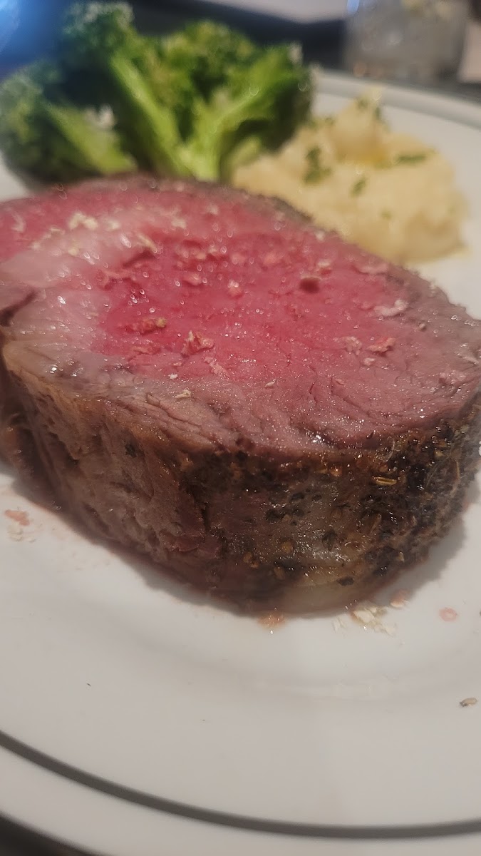 Nice place. First time here. I had the filet. It was cooked to perfection and very tender! The entree came with mashed potatoes and broccoli. Well done! Service was awesome!! Thanks!